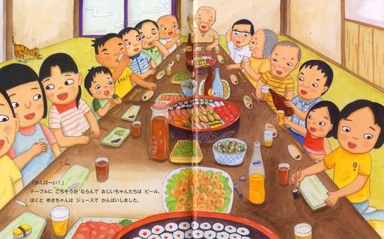 お盆なので親戚が集まり、嫁一同は料理やお酌に追われていた。