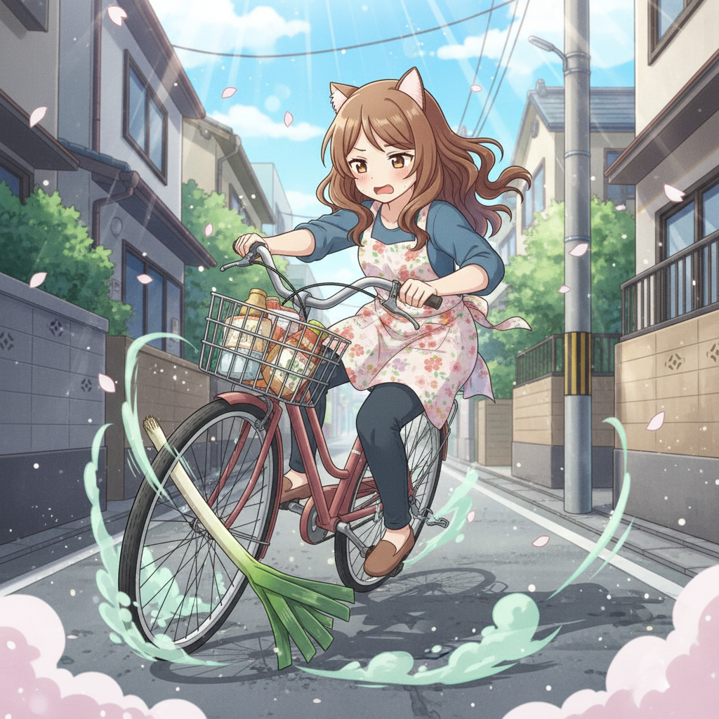 【体験談】自転車でネギを落として自分で轢いてしまった奥様の話www